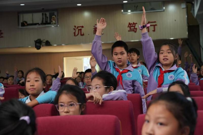 把经典变成能触摸、能歌唱的体验,这种沉浸式学习点燃了兴趣的火种。同学们纷纷回应“太好玩了!我都没听够!”同学们意犹未尽地说:“原来学习经典这么有趣,就像在寻宝一样!”活动结束时,每个孩子脸上都洋溢着灿烂的笑容。许多孩子还围着老师追问:“下次什么时候再‘穿越’呀?”这场融合了展览、演出、讲座的盛宴,让厚重的经典变成了可触摸、可歌唱、可玩耍的“好朋友”。这次活动就像在同学们心中种下了一颗神奇的种子,相信在不久的将来,这颗热爱经典的种子一定会发芽、开花,结出智慧的果实。