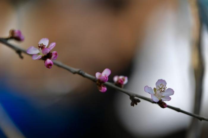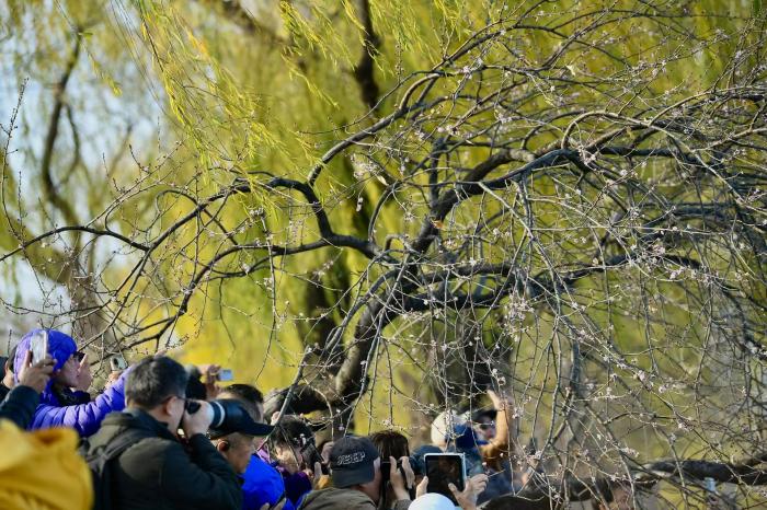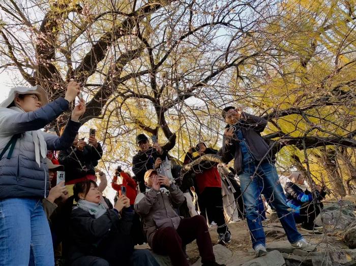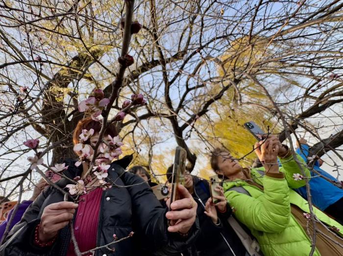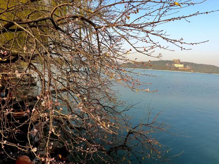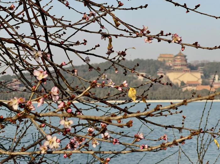 视点|颐和园西堤山桃冬月绽放 市民周末打卡