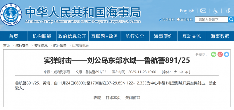 航行警告!刘公岛东部部分水域将开展实弹射击