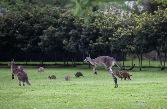 这是11月23日在澳大利亚布里斯班龙柏考拉动物园拍摄的袋鼠。