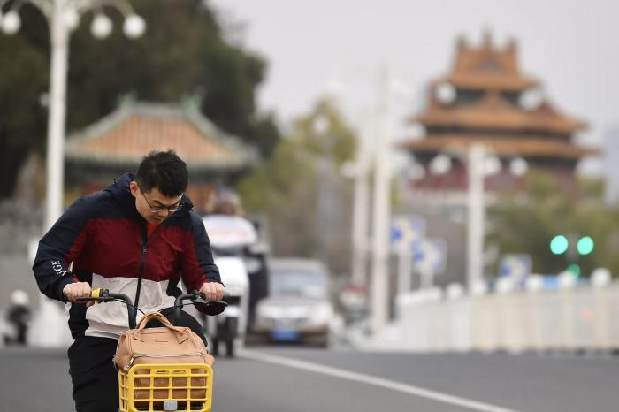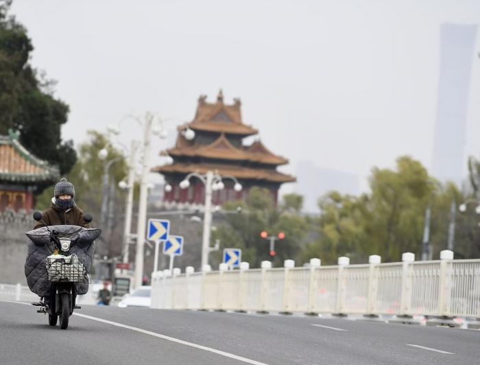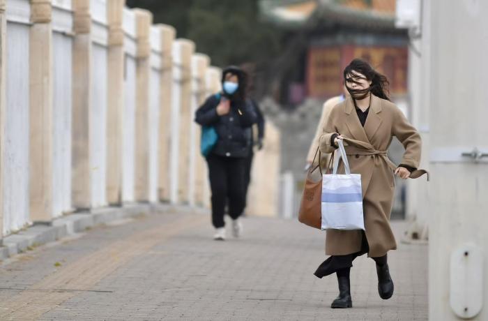 看北京|阵风10级袭京城 市民裹冬装顶风出行