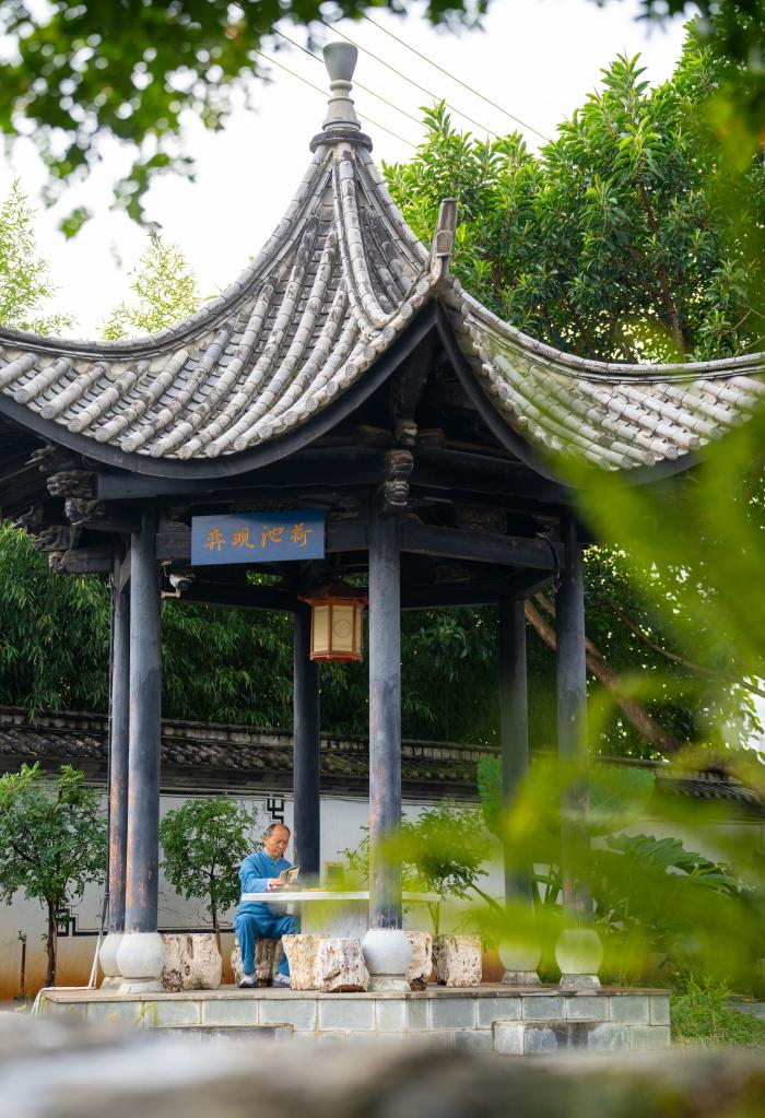 11月19日,李国伟在保山市永子文化园研究棋谱。
