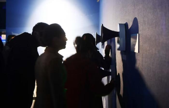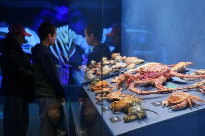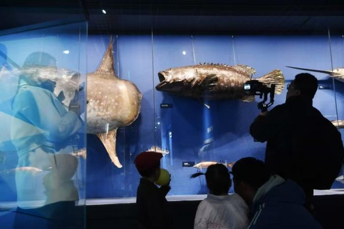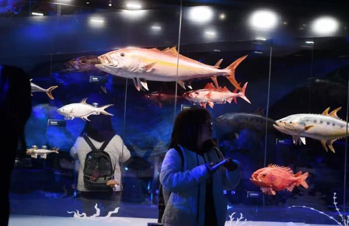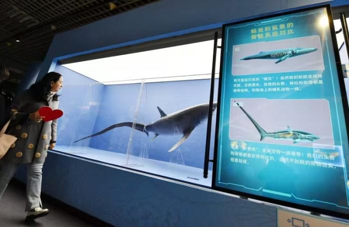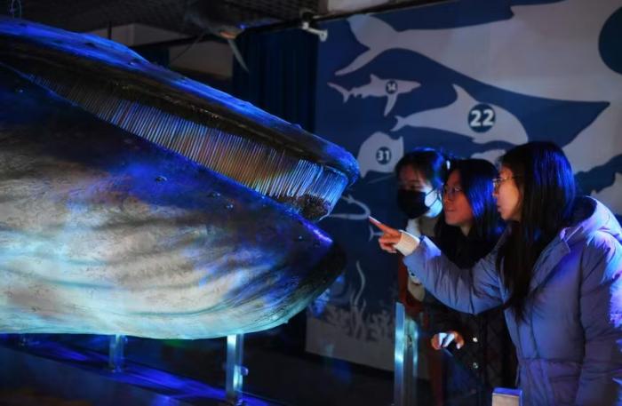 观众在国家自然博物馆观看“鲸·奇 —— 海洋深深之遇见鲸”特展。
