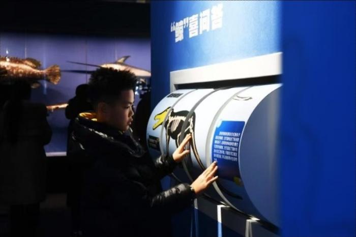 本次展览汇集150余件珍贵标本,搭配十余项多感官互动展项,构建起“深海吟游”“进化还是退化”“本能还是文化”“消亡还是再生”“与鲸共存的未来”五大核心展区,带领观众解锁鲸类奥秘。