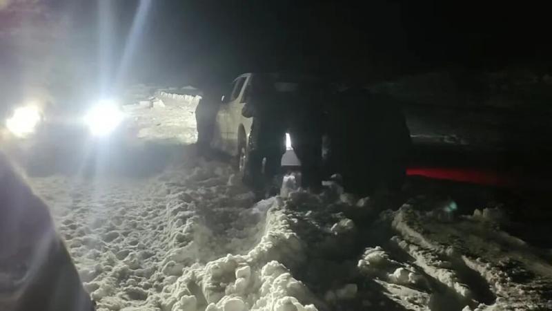 救援途中,狂风裹着雪花砸向车身,路面深积雪致车辆屡屡陷滑。救援队员们顶着刺骨寒风合力推车,遇车辆无法通行路段,便背负物资徒步前行。他们在齐膝深的积雪中艰难跋涉,仅凭手电的微光穿透风雪指引方向。