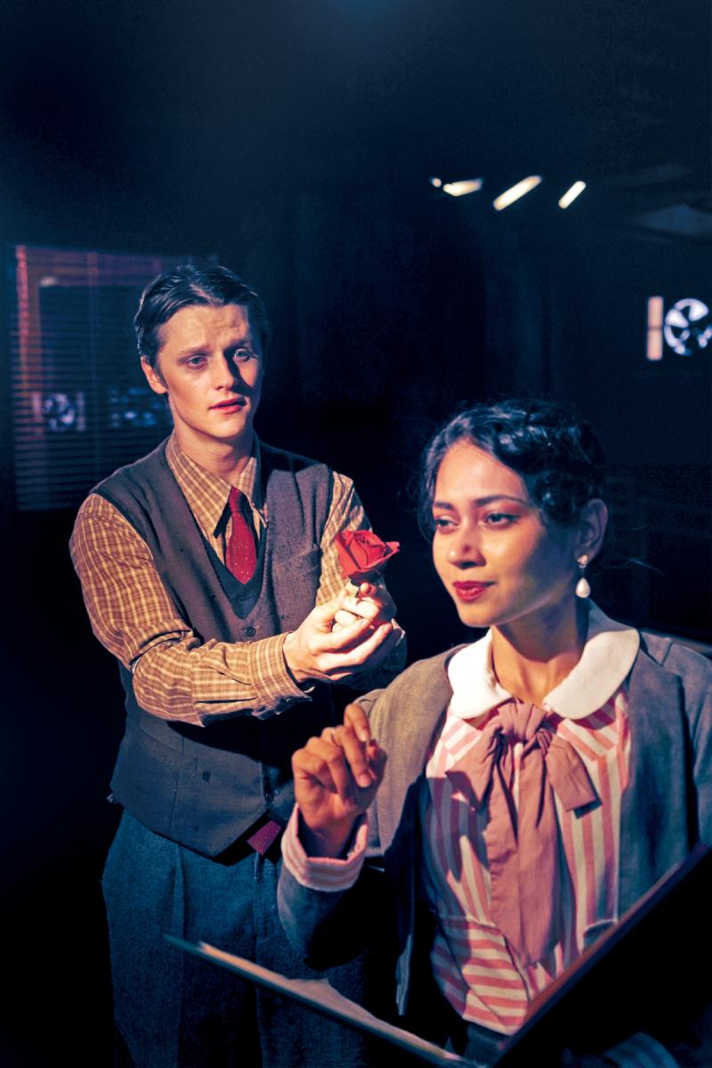除此之外,和世界著名沉浸式戏剧作品《不眠之夜(Sleep No More)》中所有观众需要戴上面具不一样,在《交易人生》里的观众与角色要真实地面对面和互动。比如在“巴黎大街”的咖啡馆,帅气的老板会邀请你坐下来喝一杯;在印刷厂里的工位上,你会和角色一起切割纸张、盖章、签字完成工作;在爵士酒吧,你可能被拉上台热舞一番,也可能被试着“卖给”魔鬼;焦急寻找马赛尔的娜塔莉可能会需要你的安慰和拥抱;而得意地穿上大衣的马赛尔则热情地邀请你加入庆祝的行列。