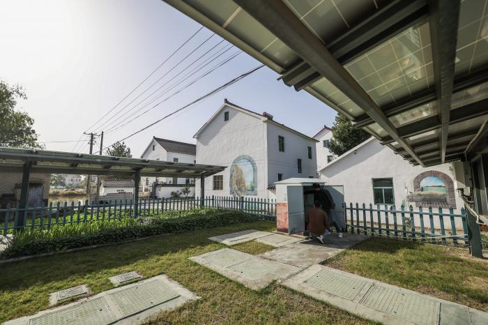 通过坚持水陆并举、治管并重,定期开展河道清漂、河岸清扫保洁等工作,全面提升水环境,助力美丽乡村建设。11月25日,工作人员在巡查和平镇长城村生活污水处理设施,该设施用太阳能光伏设备收集的电能处理生活污水。