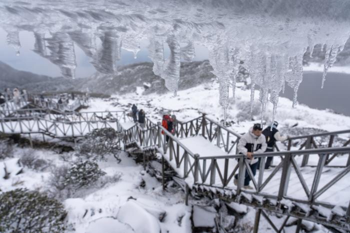 11月24日,云南大理苍山冰雪景观吸引众多游客前来观赏。