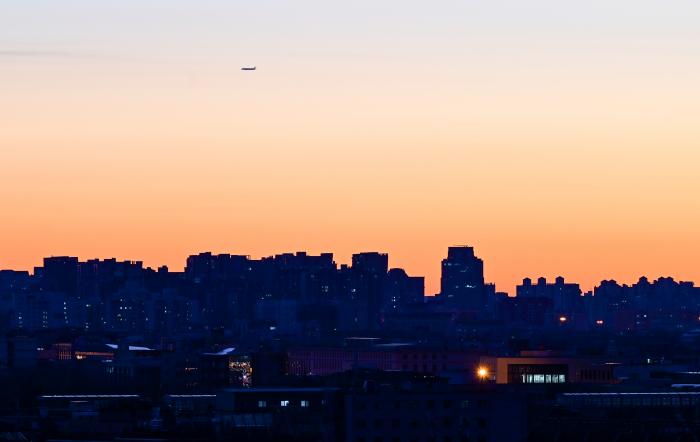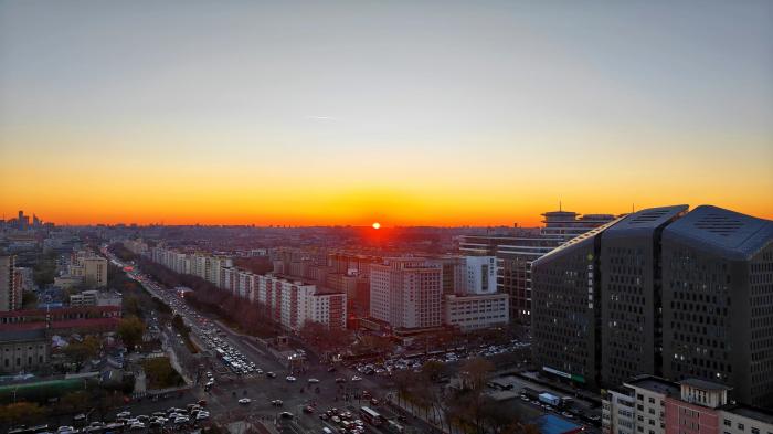 晨光破晓,北京天际线在金红色晨曦中苏醒