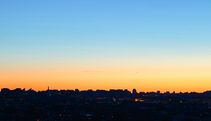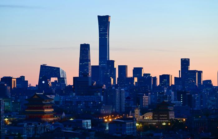 11月27日,北京迎来通透澄澈的晴天。晨曦中,城市天际线被晕染出层次丰富的渐变色彩。