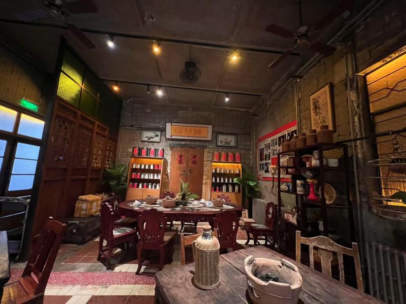 行走在园区,不同风格的咖啡馆散落在各个角落。临街的本土咖啡品牌BERRY BEANS门店前,两把复古红椅子成了热门拍照点位。昔日的传达室修旧如旧,不仅保留了外汇票、打字机等老物件,还“摇身一变”成了飘着咖啡香气的网红店,并创造了一日卖出600杯咖啡的销售纪录。阿招鸡煲餐厅保留了原来友谊商店员工食堂的老环境,带有花纹的地砖仍旧是20世纪70年代铺设的“原砖”,墙上的报刊栏、拐角摆放的烧水壶让人一秒穿越,仿佛回到了当年。这样的改造还有很多:原仓库改造成意大利面餐厅Carbo,维修间改造成“蒸汽朋克花园”,老维修部变身老外频频光顾的索尔酸面包坊……