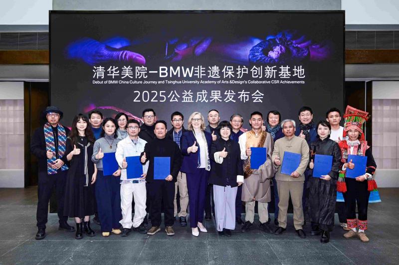 11月28日,在“清华美院-BMW非遗保护创新基地2025公益成果发布会”上,非遗传承人与清华美院教授联袂打造的“宝马新世代概念非遗文创”首次亮相,为宝马在中国创新履行企业社会责任写就“创新+责任”篇章。