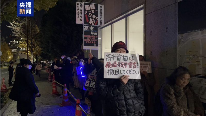 日本民众在首相官邸前集会 要求高市撤回涉台错误言论