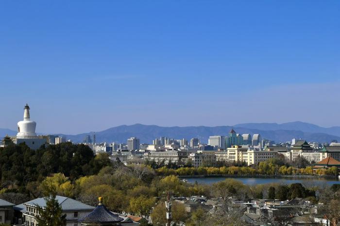 12月1日,北京迎来晴好天气,蓝天作底、微风轻拂,能见度超15公里。
