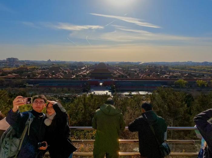 12月1日,秋日余韵与城市天际线交织成画,不少市民登上景山等观景高地,定格“故宫红墙+CBD摩天楼”的古今同框盛景。