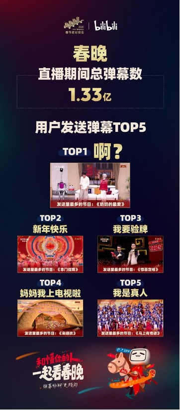 B站春晚直播弹幕达1.33亿,发送最多的弹幕是“啊?”
