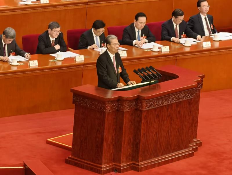 3月9日上午,十四届全国人大四次会议第二次全体会议在人民大会堂举行,听取全国人大常委会委员长赵乐际关于全国人民代表大会常务委员会工作的报告。