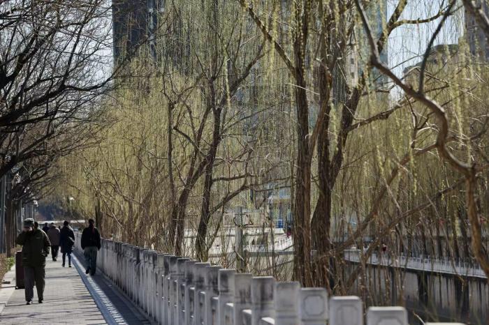 看北京|北京莲花河柳芽初绽,市民踏青赏春正当时