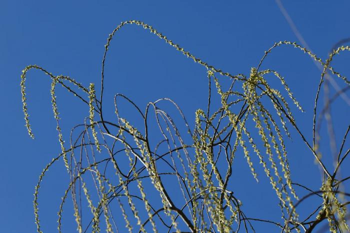 阳光下的嫩柳芽格外可人。