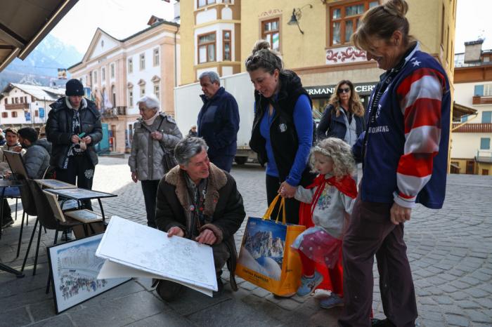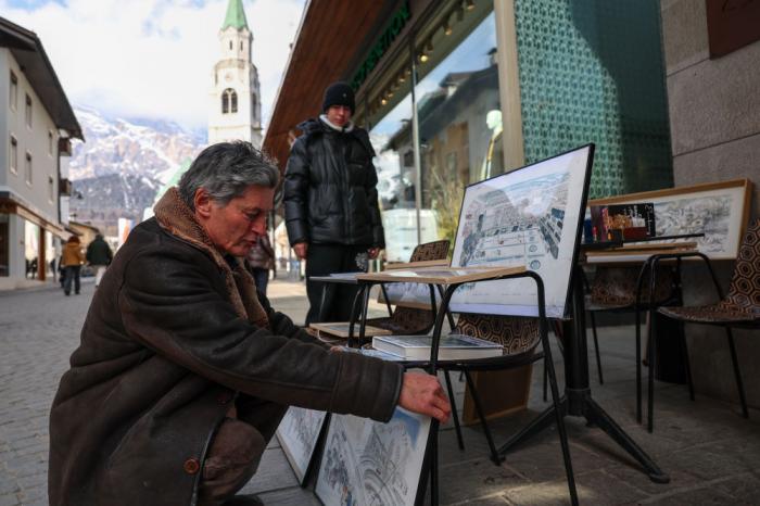 3月9日,马克·阿尔在意大利科尔蒂纳街头作画