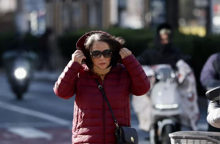 当日,市民风中出行。