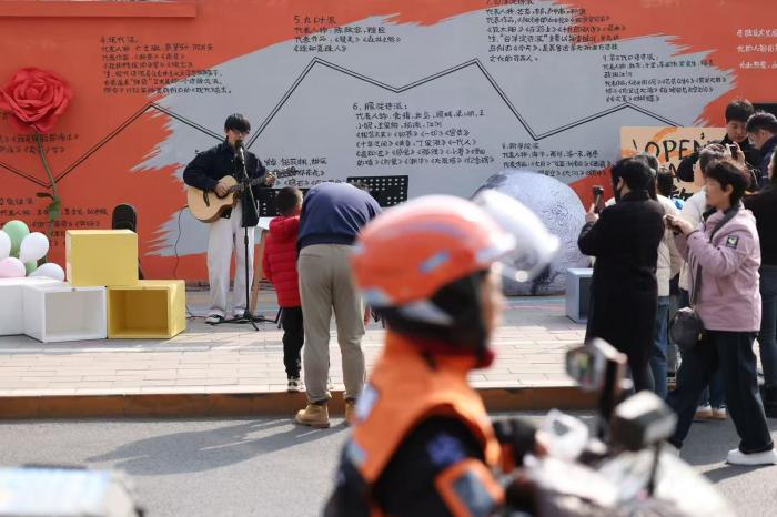 街边五大诗意创作摊位人气十足,参与者可写诗换花、挂心愿风铃,在动手创作中感受诗意。