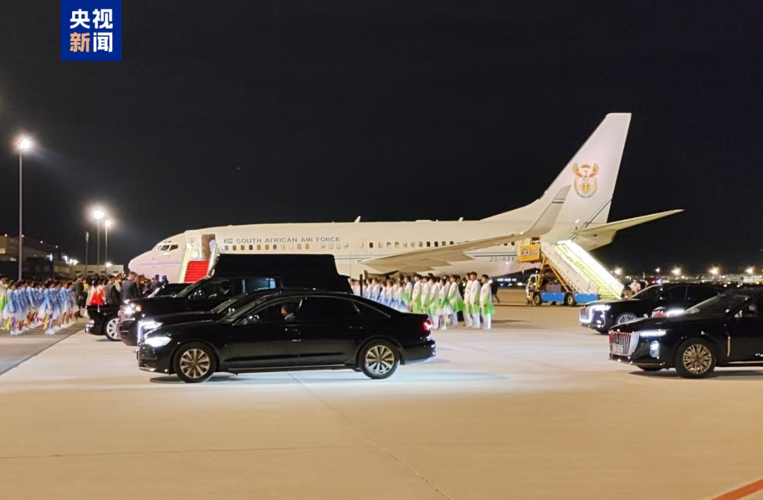 今天3点10分,南非总统拉马福萨乘机抵达北京,将出席在北京举行的2024年中非合作论坛峰会。