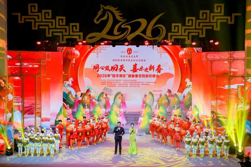 2月9日,“同心筑回天 喜乐迎新春”2026年“回天地区”迎新春百姓联欢晚会在回龙观文化艺术中心举办。晚会通过11个精心编排的节目,全景展现回天地区高质量发展成果。