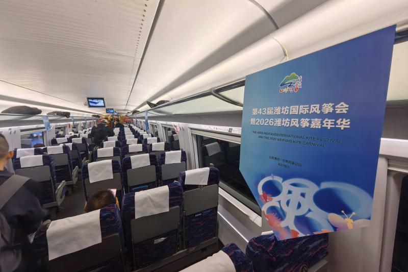 第43届潍坊国际风筝会暨2026潍坊风筝嘉年华,将于4月18日在山东省潍坊安丘市世界风筝公园盛大启幕。4月13日12时31分,G1069次“风筝专列”从北京南站准点启程,16时06分抵达“世界风筝之都”山东潍坊,标志着本届风筝会的铁路运输服务正式拉开序幕。