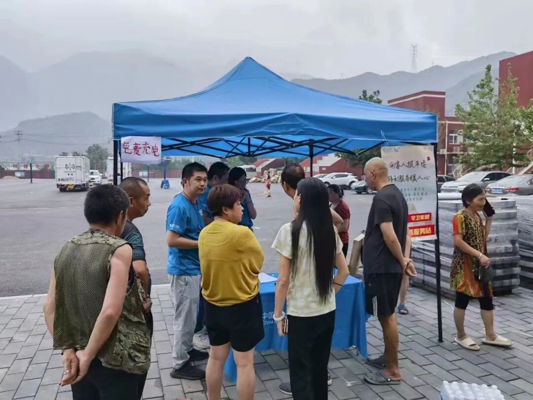 北京信息通信各运营企业开展现场办公,为镇政府抢险人员、受灾群众提供免费充电、赠送流量和通话,以及应急保障号码赠送服务、业务咨询等。