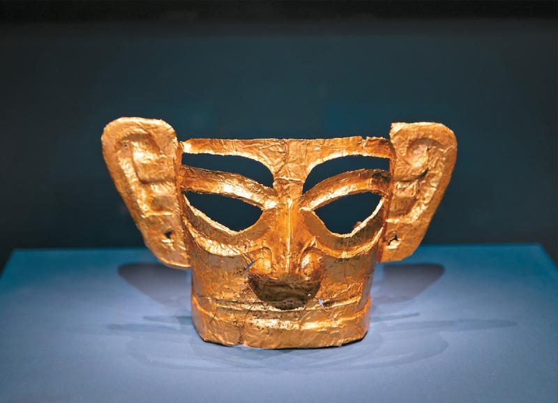 三星堆遗址出土的黄金面具 供图/视觉中国