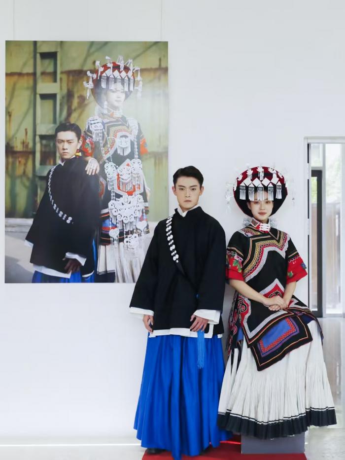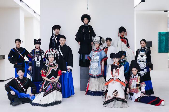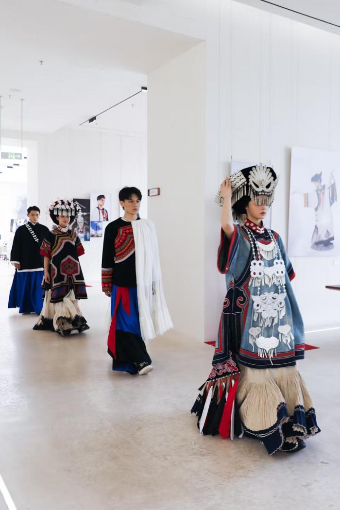 来自北京电影学院高等职业教育学院的学子们,身着彝族传统非遗服饰带来走秀表演。
