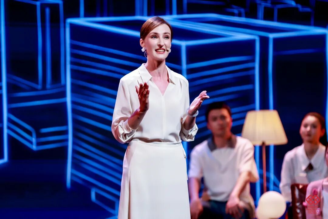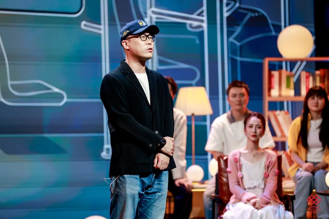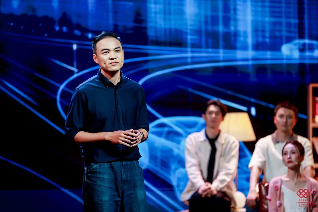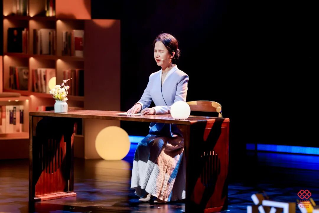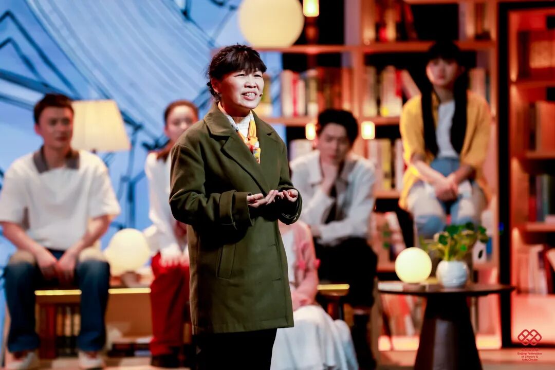 舞台美术以“城市书房”为设计理念,通过悬浮、错落拼接的书架,搭建兼具文学底蕴、叙事功能与场景体验的沉浸式阅读空间;11位讲述者自带鲜明身份标识与北京地域文化符号,形成多元叙事剖面;主持人以现场叙事中枢、主题解读人、时代观察者三重身份定位,以兼具文学性、思辨性与共情力的诗意表达,构建贯穿全场的统一叙事语态;情景戏剧化串场实现文学叙事与舞台艺术的有机融合,强化整体美学质感与艺术张力。