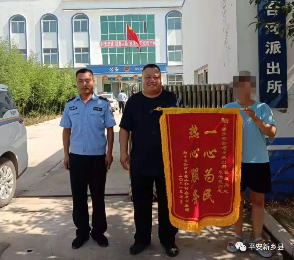 7月9日上午,丢失手机的女教师给合河派出所送来一面印有“一心为民,热心服务”的锦旗,对合河派出所民辅警牢记宗旨、践行使命为群众排忧解难的行为表示感谢。