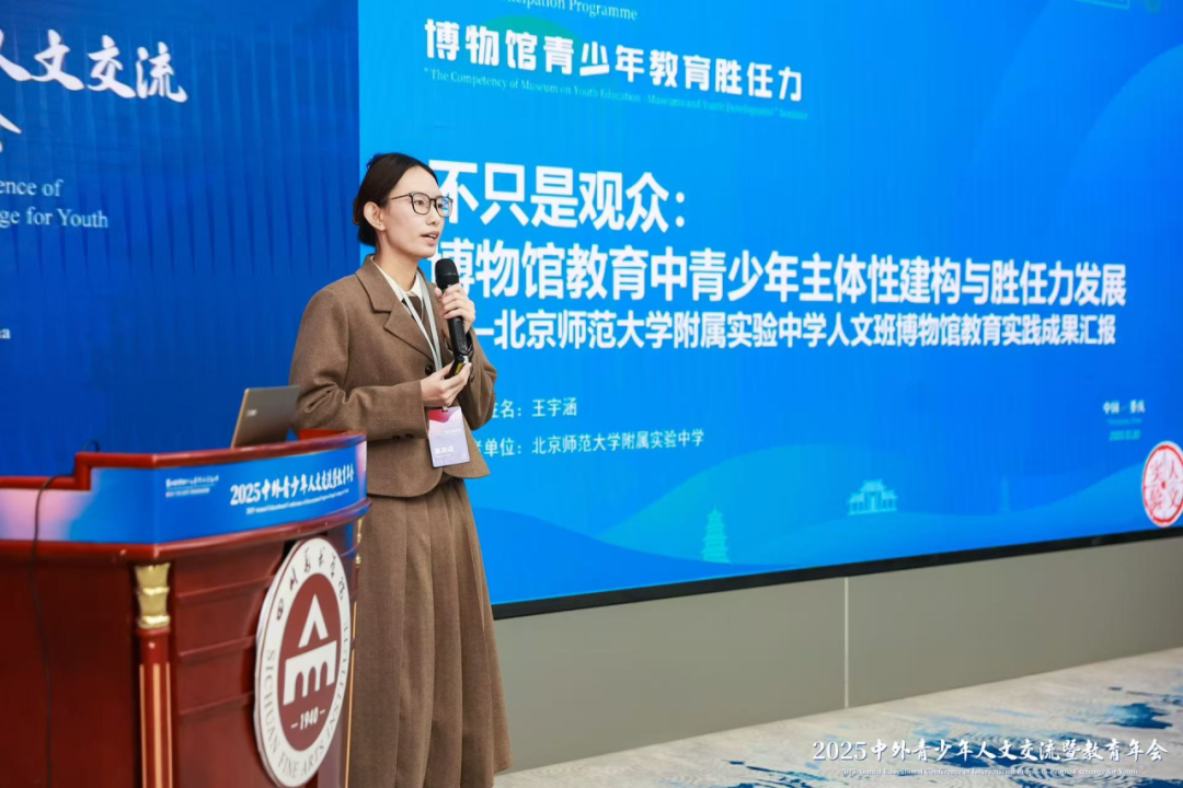 2025年12月19日至20日,以“未来,在世界与我之间”为主题的2025中外青少年人文交流暨教育年会在重庆四川美术学院虎溪校区圆满落幕。这场汇聚300余名教育界专家学者、管理者及一线教师的盛会,紧扣中欧建交五十周年时代背景,为青少年中外人文交流搭建了思想碰撞与实践探索的高端平台。北师大实验中学作为深耕人文教育的代表校,派出教师团队全程参与,其人文班长期践行的 “大博物馆教育” 实践,与大会倡导的人文交流育人理念深度契合,成为本次交流中值得关注的教育探索样本。