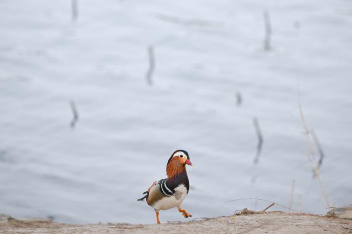 3月27日,一只鸳鸯在北京颐和园内踱步。