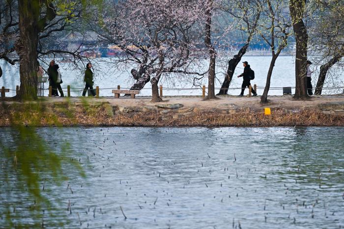 视点|颐和园西堤山桃冬月绽放 市民周末打卡