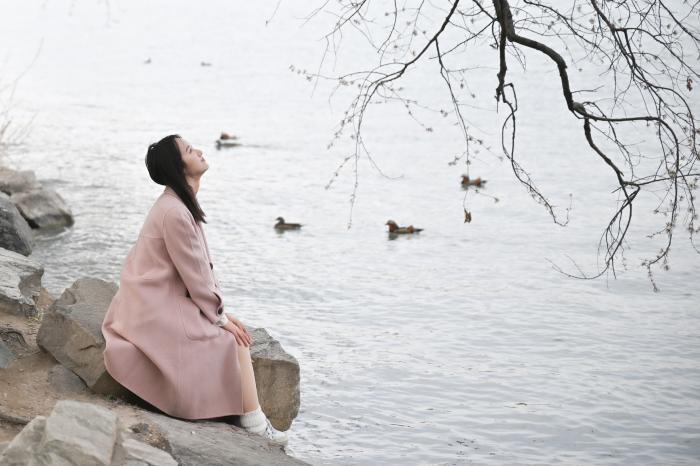 3月27日,一名游客在北京颐和园内留影。
