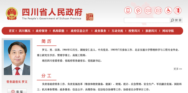 公开资料显示,罗文曾任工业和信息化部党组成员、副部长,国家发展和改革委员会党组成员、副主任,今年3月空降四川。