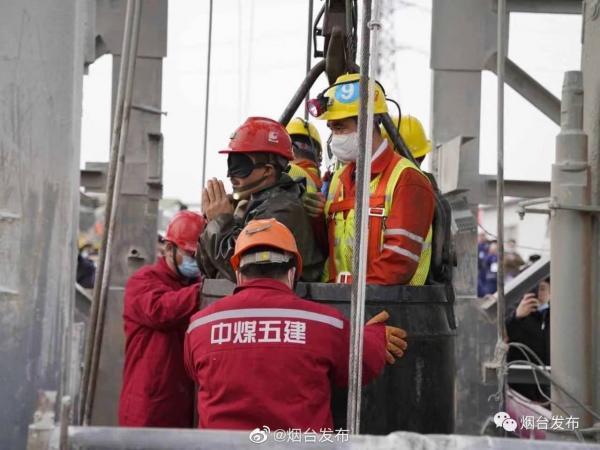 1月24日13时32分,位于5中段3名被困矿工升井成功,其中2人可在救援人员搀扶下走动;