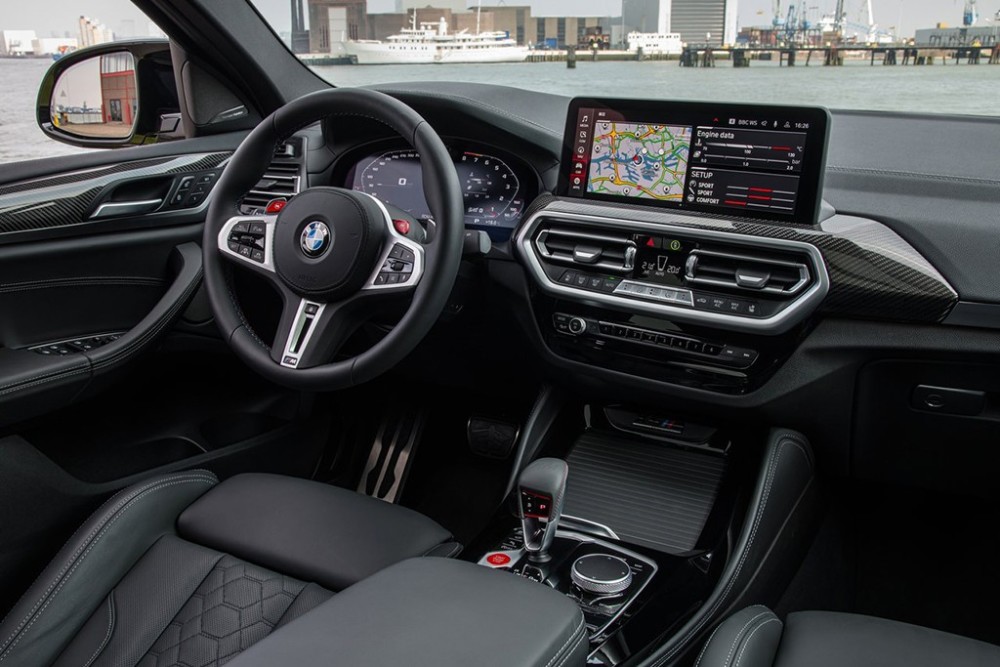 新款宝马X3 M和X4 M的内饰同样是以运动为主要设计风格,大量红色元素搭配上碳纤维饰板,更能激发出驾驶者的驾驶欲望。此外,新车还配备了M专属的方向盘和挡把。