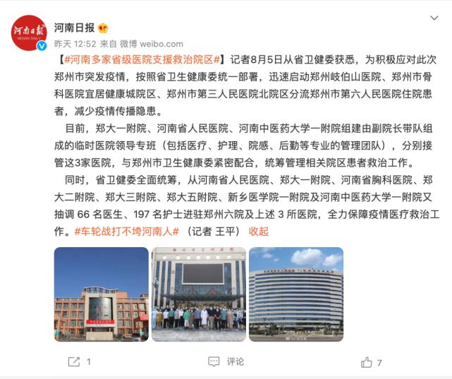 8月2日,郑州已将郑州市第六人民医院所有新冠肺炎确诊病例、无症状感染者转移至定点医疗机构郑州市岐伯山医院。