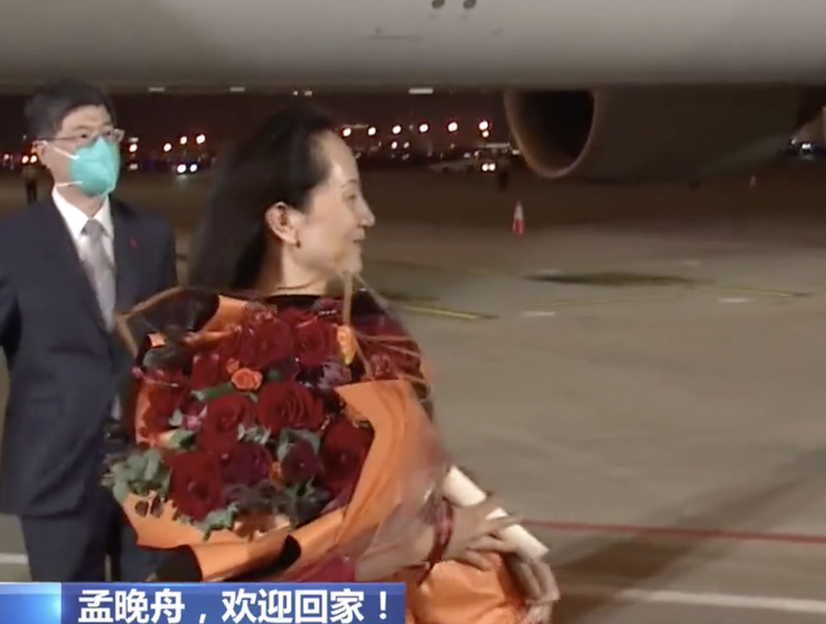 现场:孟晚舟走出机舱 一身中国红