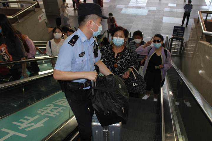 “小伙子,我车票买了怎么进站呀?”正在执勤的民警马良良回头一看,是一位慈祥的老奶奶问路。
