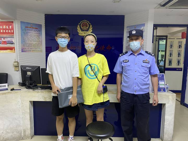 不一会儿,李女士便带着孩子急匆匆地赶到派出所,从贾警官手中领回了学习资料,并对民警的热心帮助给予了高度赞赏。