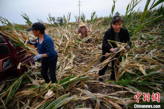 三泉镇南平原村村民曹清萍把家人动员起来,丈夫、子女利用工作间隙回村,全家4口人都用手掰玉米棒子的方式展开抢收。“我家种的玉米不多,一共6亩,有些玉米秆倒伏了,即便等到土壤变干也离不了人工作业,所以就不等了。”