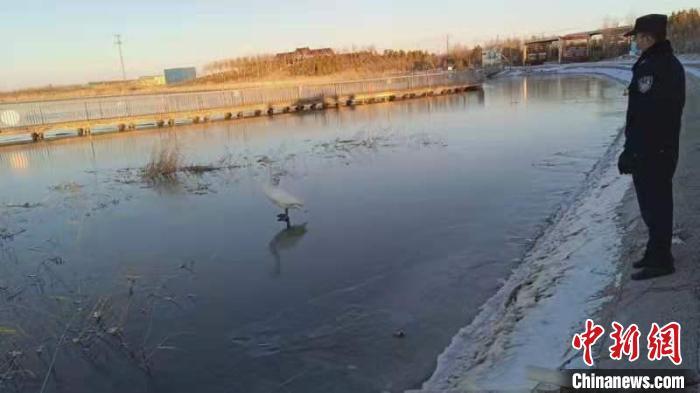 内蒙古二连浩特警方救助并放飞一只大天鹅