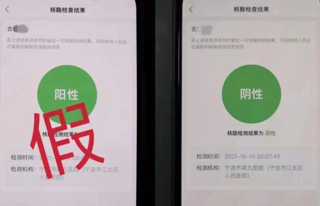 12月16日宁波市公安局海曙分局发布消息称,12月14日,宁波市公安局海曙分局望春派出所接群众举报:有人伪造核酸检测报告并在微信上发布。海曙分局立即开展调查。