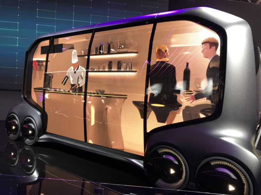 与上面的仿生机器人相比,百度的“汽车机器人”更像一辆车,但又完全颠覆了传统汽车的设计理念。自动鸥翼门、全玻璃车顶与外部传感器融为一体;车内不设方向盘、踏板,且拥有超大曲面屏、智能控制台、变光玻璃、零重力座椅等智能化配置。