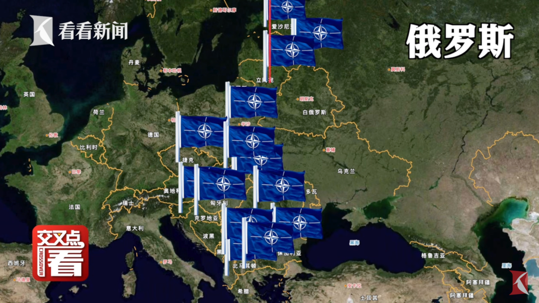 冷战结束之后,北约成员国五次扩充,从16个增至了30个,且40%以上都是中东欧国家。从地图上来看,北约成员国已呈“U”型包围了俄罗斯。